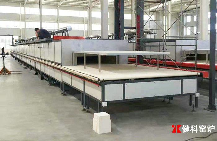 輥道窯的燃燒室在輥子的下方,用壓縮空氣霧化重油、柴油、煤油等燃料進行燃燒。也有用煤氣發生爐所產煤氣進行燃燒的,比較大型的陶瓷廠大都采用雙段冷煤氣站,使用冷靜煤氣進行燃燒,產生高溫。燃燒室與輥道之間,有耐火材料隔離,火焰不直接接觸被燒制的產品。相對來說,煤氣發生爐配套輥道窯燃燒比重油、柴油等成本低,比直接燃煤效率高環保達標。使用重油為燃料時,為防止煙氣污染制品,要采取隔焰或半隔焰形式。電熱時,為保護發熱體或使溫度更均勻,也需將發熱體和制品隔開。